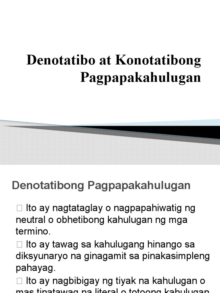Denotatibo At Konotatibong Pagpapakahulugan Pdf